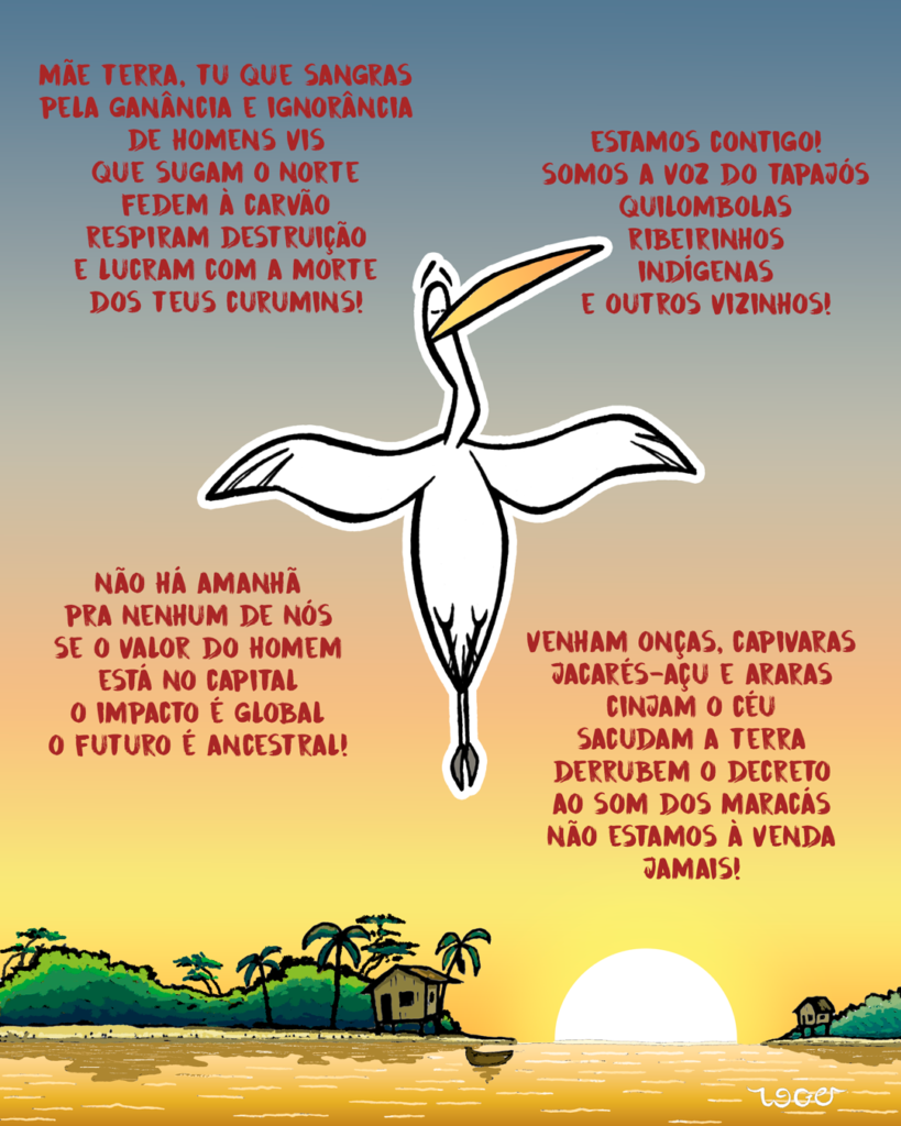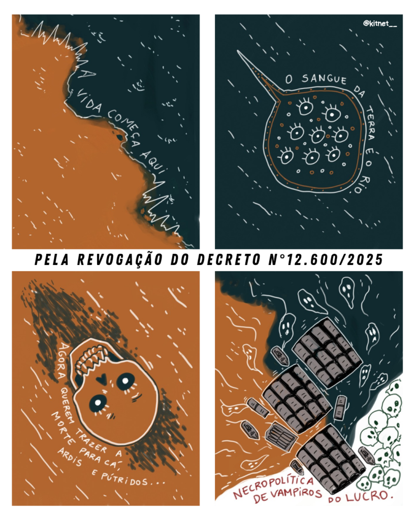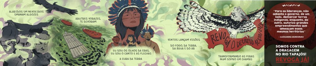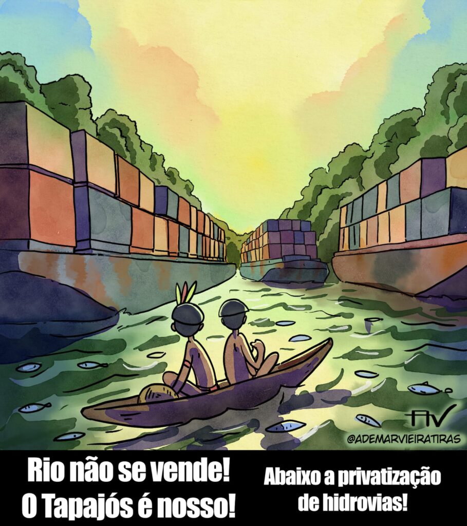 A iniciativa Norte em Quadrinhos organizou uma mobilização artística em defesa do rio Tapajós, da Amazônia e dos povos que vivem em seus territórios. A ação reúne 15 artistas da região Norte que produziram artes-denúncia em apoio à luta iniciada no dia 22 de janeiro, em Santarém (PA), pela revogação do Decreto 12.600/2025, que trata da privatização dos rios Tapajós, Madeira e Tocantins. A mobilização dialoga diretamente com a ocupação realizada na unidade da Cargill, no município, onde povos indígenas, ribeirinhos, ativistas e movimentos sociais reivindicam a revogação da medida.