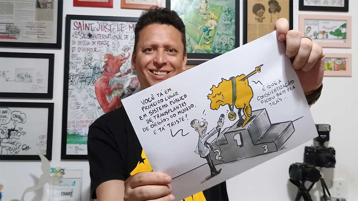 Em sua visão, o humor gráfico não é sinônimo de leveza banal; ele é uma ferramenta poderosa de reflexão profunda. “Uma boa charge nem sempre vive do sorriso. Às vezes o impacto vem sem graça nenhuma vem da consciência”. Brum reforça que, ao tratar de algo tão delicado quanto a doação de órgãos, o respeito precisa ser absoluto, com a intenção clara de provocar reflexão, e não deboche.