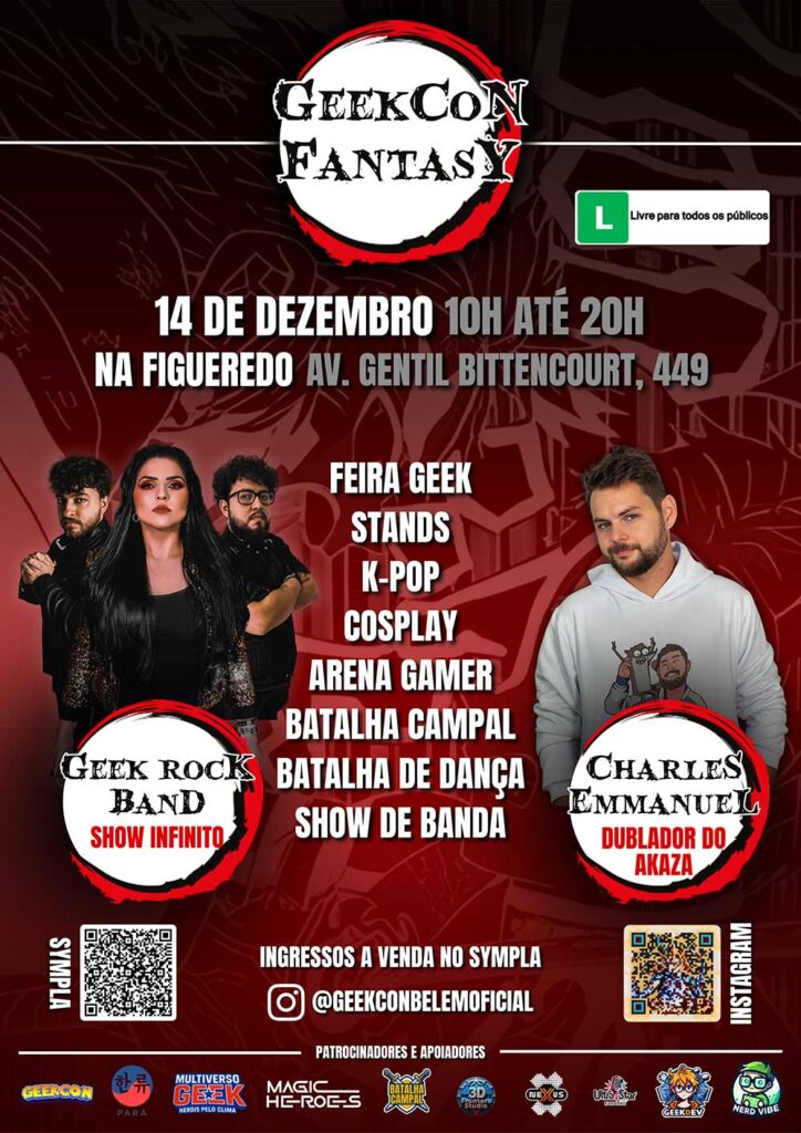 O GeekCon Fantasy 2025 confirmou sua próxima edição para o dia 14 de dezembro, no espaço Na Figueredo, em Belém, e promete segundo a sua organização encerrar o ano como a maior celebração geek da região Norte. Desta vez, o evento mergulha no universo dos caçadores de onis com uma temática totalmente dedicada ao aclamado anime Demon Slayer (Kimetsu no Yaiba).