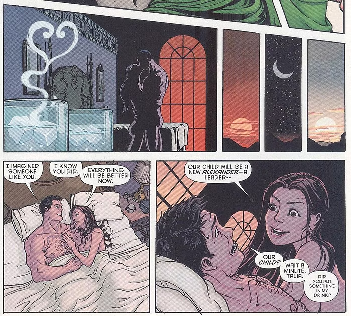 O autor afirmou que Batman “não precisou de coerção”, algo que a equipe de criação tentou demonstrar em outras representações do evento. Morrison explica que Talia, sendo a filha do diabo “criada com poções e filtros”, agiu como agiu. As “negações e acusações raivosas” de Batman viriam depois, como resultado de um relacionamento drasticamente alterado com Talia e de uma “vontade de magoá-la” que remonta a representações anteriores.