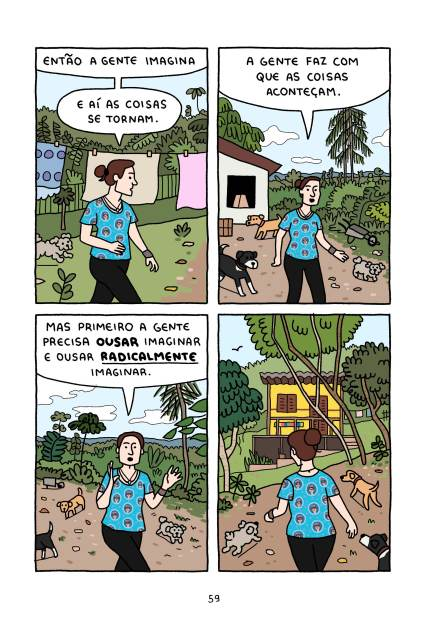 Pablito Aguiar: É muito potente e por isso que o jornalismo é tão importante sabe? Ele escuta e conta pra outras pessoas e faz essa comunicação, essas mensagens irem para para essas mensagens atingirem mais pessoas e quando uma história encontra outra outra outras histórias acaba acontecendo coisas assim que às vezes tu nem imagina sabe? Uma matéria jornalística pode salvar vidas às vezes. Sabe? Pode denunciar crimes pode Enfim é muito potente o quadrinho ele é mais uma forma de comunicar o jornalismo em quadrinhos é mais uma forma de comunicar histórias reais e por isso que tem muita potência essa linguagem e eu acredito muito nisso sabe? Por isso que eu que eu trabalho com jornalismo em quadrinhos.