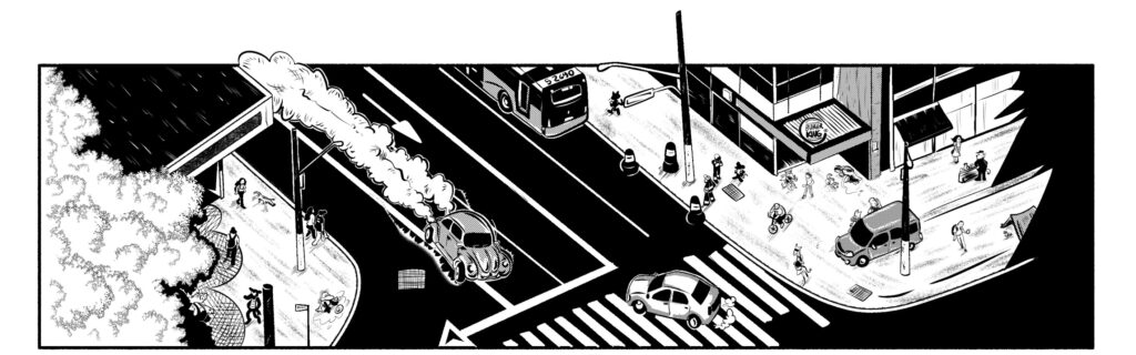 Situar um corvo detetive na São Paulo de hoje evoca uma atmosfera que o próprio autor descreve como um encontro entre “Mickey detetive e Spirit em Sin City”. É o resgate do espírito dos jornais ilustrados e das aventuras seriadas, o “suspense de banca”, agora adaptado para o consumo em telas. Narrativamente, a obra utiliza o formato de folhetim moderno para criar ganchos constantes, mantendo a retenção do leitor em um fluxo de leitura rápido e impactante.