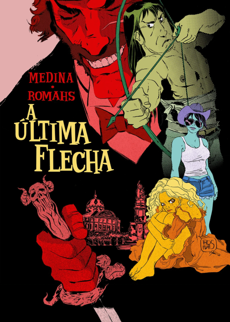 Romahs Mascarenhas: Eu falo por Medina que A Última Flecha tem vida própria, que é a nossa Satisfacion dos Rolling Stones, A Banda do Chico Buarque, aquela coisa do início de suas carreiras das quais eles não conseguem se desconectar, porque os anos passaram, a gente seguiu, focou em outras coisas, lançou coisas novas, mas, ao mesmo tempo, vem editora nos EUA querendo republicar a Última Flecha em inglês, em espanhol, o pessoal da Bienal de Curitiba selecionando em catálogo das melhores da década, a Devir relançando em versão digital e o Sidney Gusman elegendo como um dos dois melhores quadrinho do Norte que ele já leu. Esse quadrinho tem brilho, é como Belém Imaginária, até quem não leu, conhece. Inclusive Belém Imaginária é a outra HQ que o Sidão escolheu como destaque da nossa região. Mas, assim, eu e o medina temos muito orgulho dela. Não sei o que ele acha hoje do roteiro, mas, eu acho que meu traço evoluiu muito desde 2018, quando eu desenhei essa HQ. E ela furou a bolha mesmo, esse foi o papel dela, hoje temos uma HQ nossa que ganhou o MQ Mix, o Onde Habita o Medo. Fiquei bem empolgado, tínhamos que enfim dar esse outro passo. Isso é histórico.