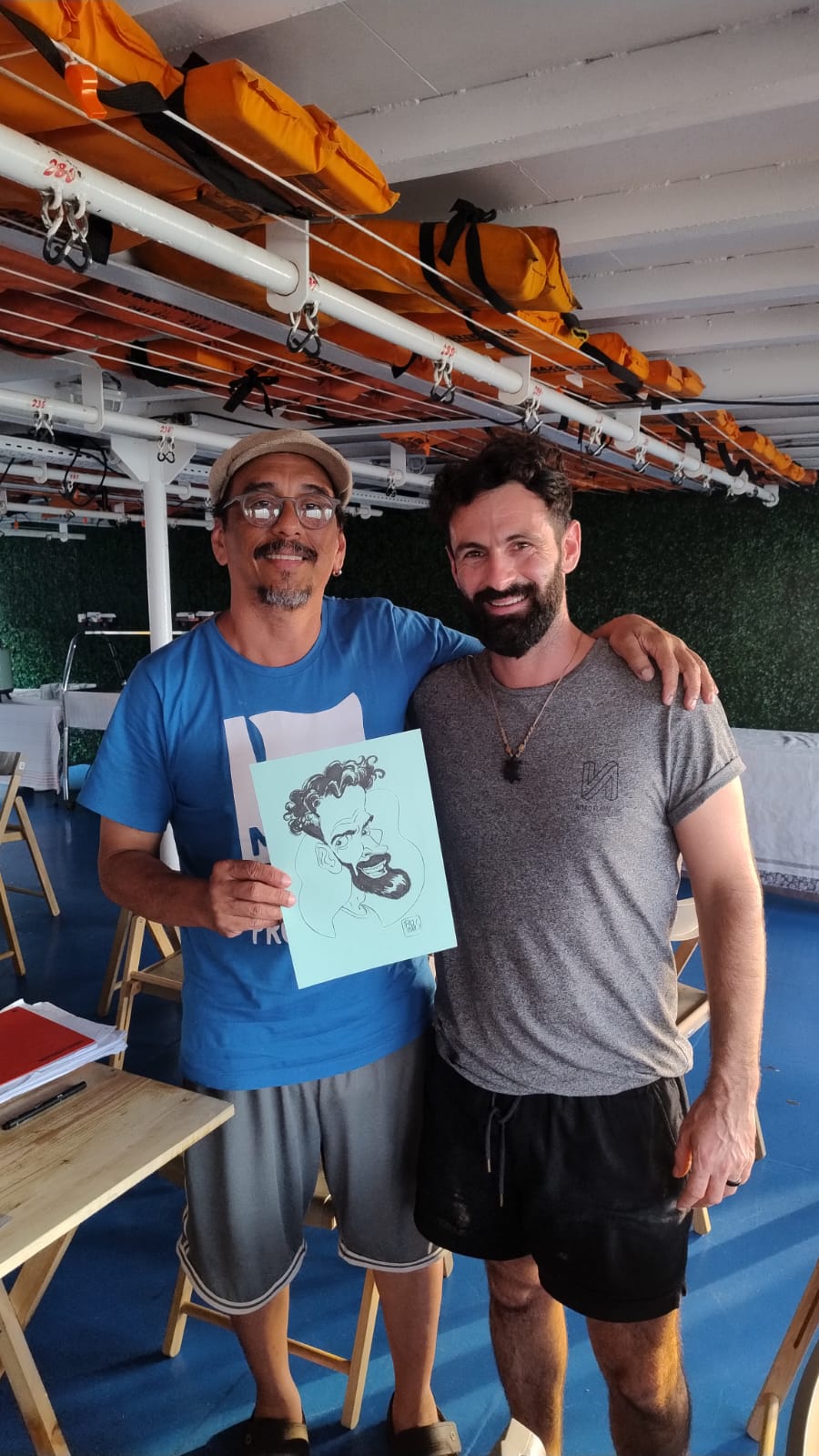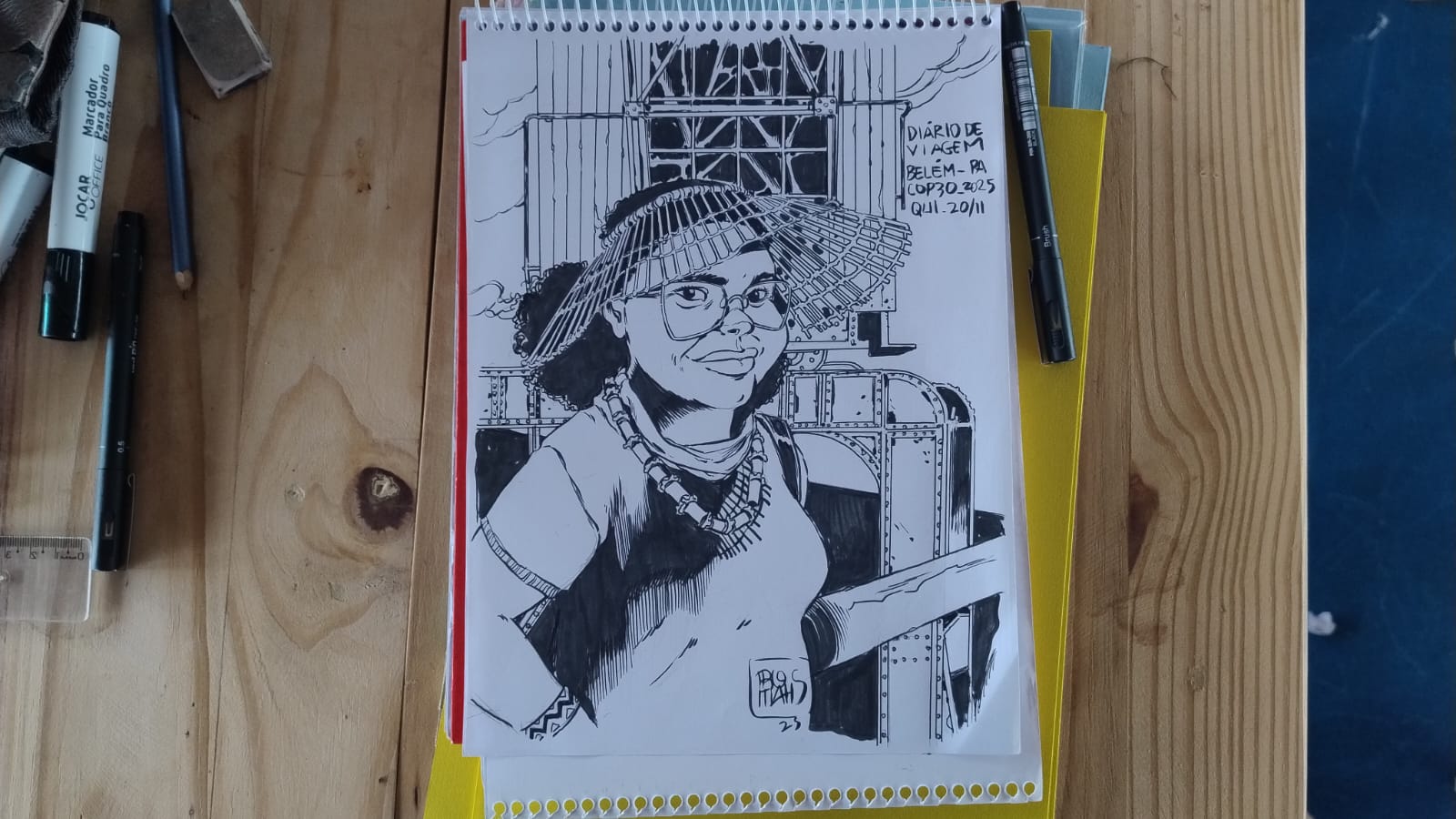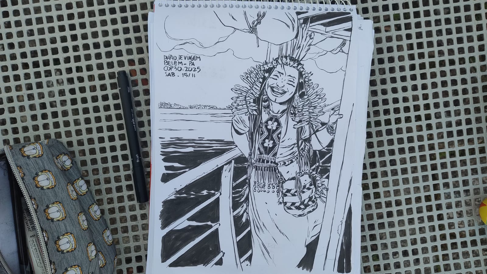 Romahs Mascarenhas: Eu não estava nesse universo da COP30, sabia? Onde os artistas estavam se conectando com o resto do Brasil e exterior. Eu viajei pra Belém num barco vendo rio, floresta, ribeirinhos, nossa fauna, nossa flora, no barco tinha lideranças quilombolas, indígenas, ribeirinhas e eu me reconectei com isso, nem percebia o quanto esse olhar pra dentro me fazia falta, eu escrevo sobre eles, desenho eles, mas não tinha percebido que me faltava estar mais lá, pisando no mesmo chão e vendo de pertinho o que nos chega nas notícias dos portais, nos documentários. Acabei focando nisso, sendo engolido por isso, entrei mais no norte em vez de sair. Mas, fico esperançoso que tanta gente vindo em Belém e ver a nossa cultura tão rica e bonita saia daqui levando um pouco dela como pólen em suas roupas e bagagens.