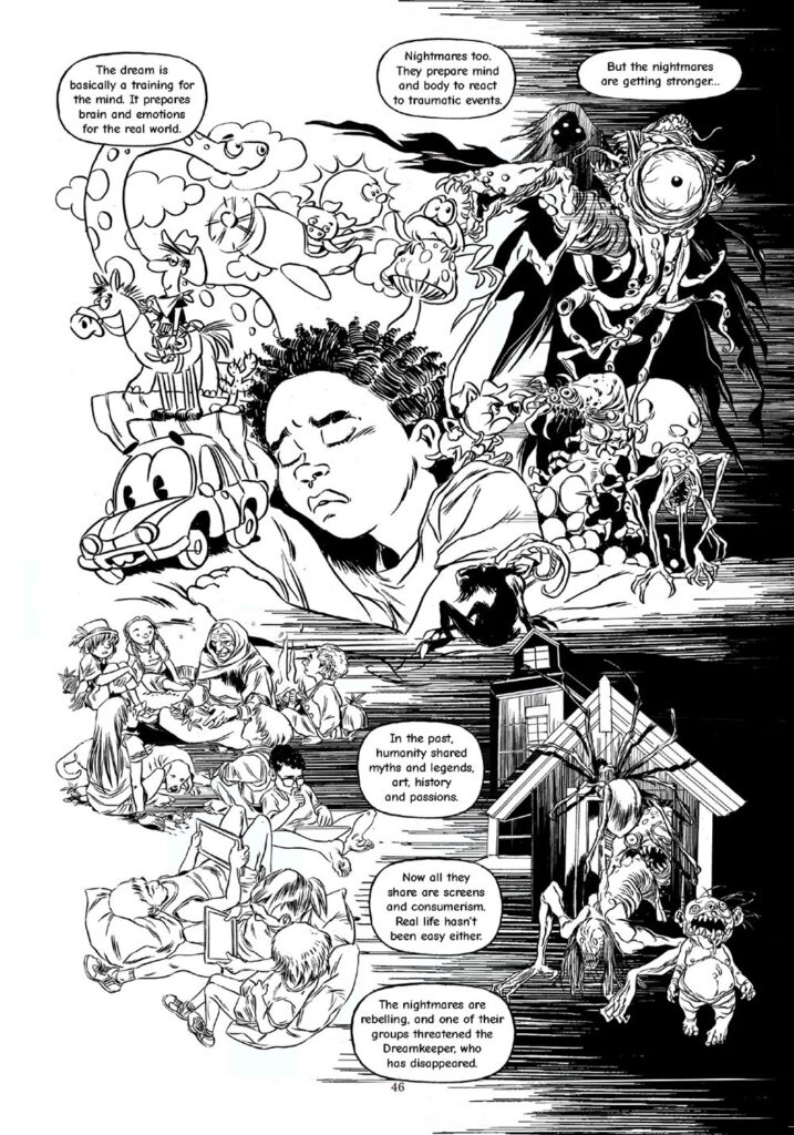 “Dreamwalker” fala diretamente com o nosso lado mais imaginativo: o enredo foca no recrutamento de um “agente dos sonhos”. Qual a missão desse agente? Proteger os sonhadores comuns dos mais “terríveis pesadelos”. Com uma narrativa envolvente e a arte marcante de Mascarenhas, a HQ solidifica o talento nacional dentro da coletânea.